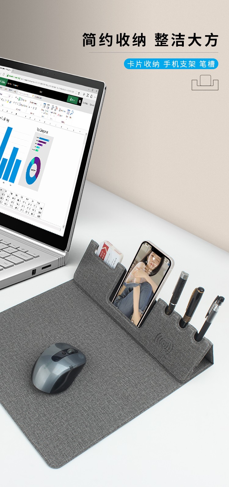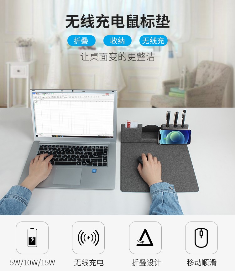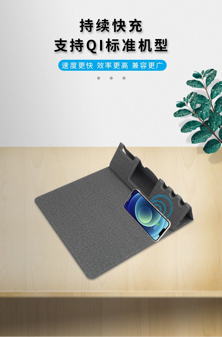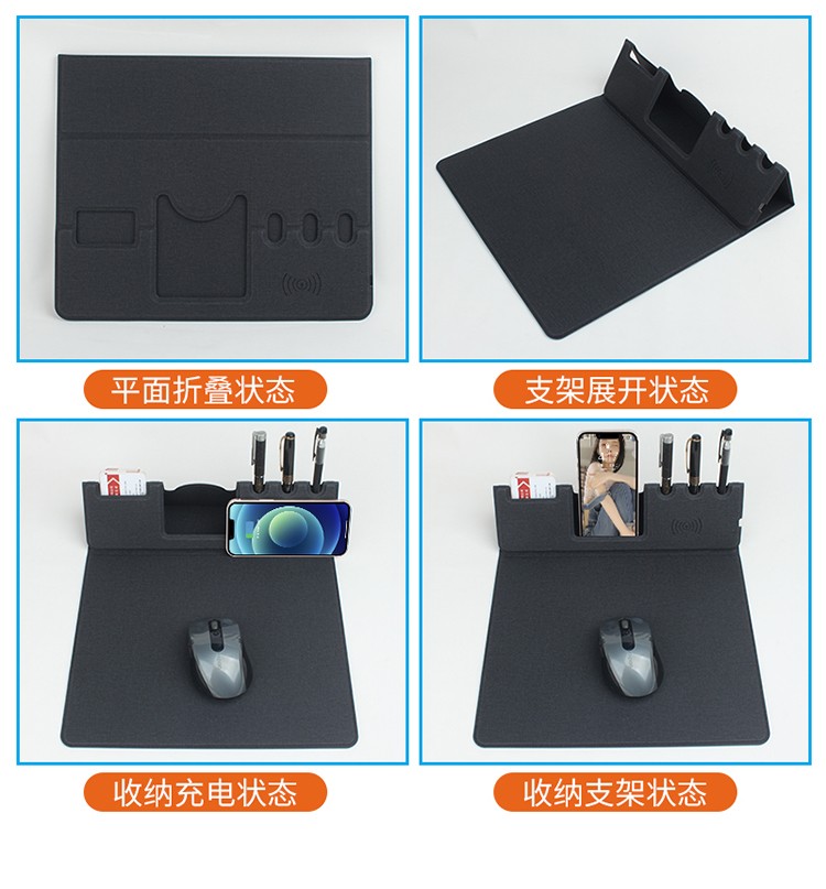折疊支架款無線充電鼠標(biāo)墊可定制 布紋超薄無線充鼠標(biāo)墊可印LOGO