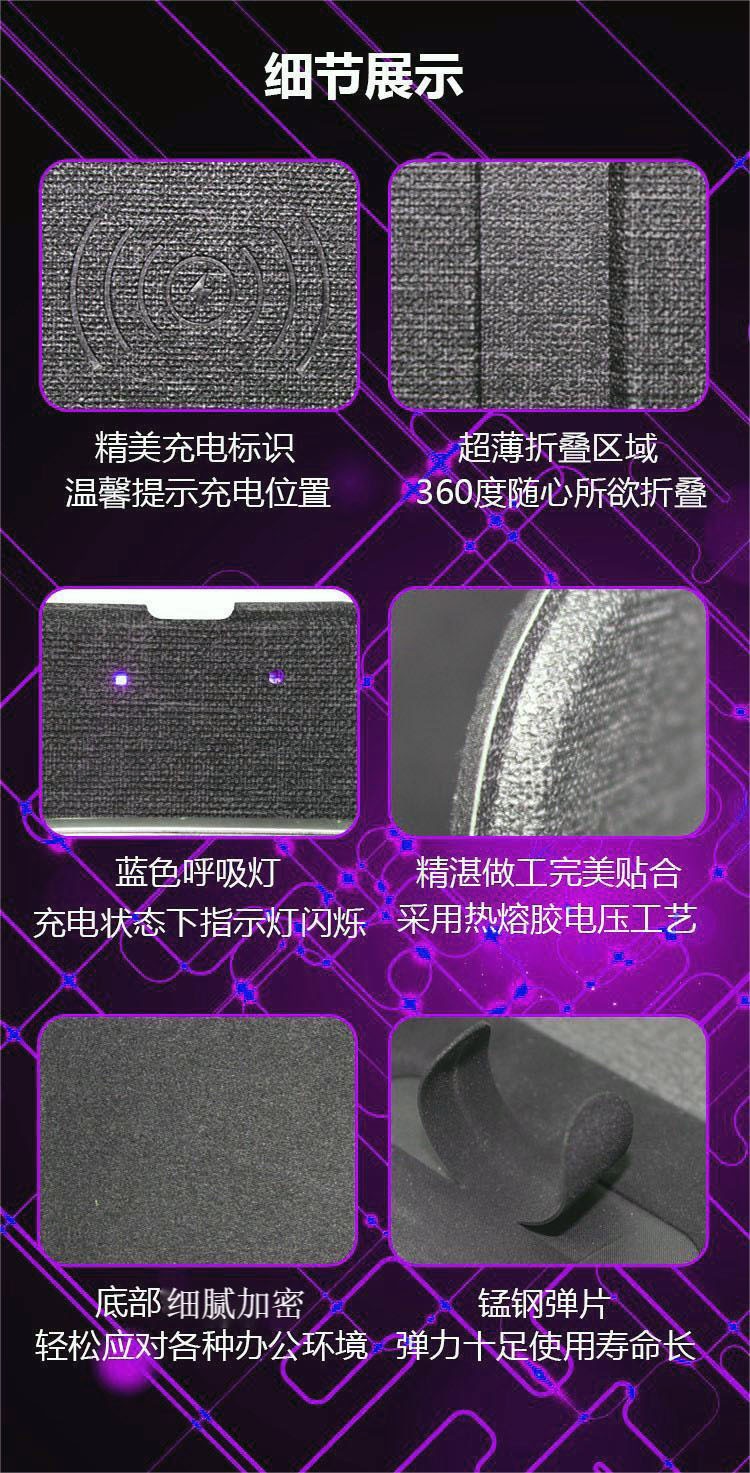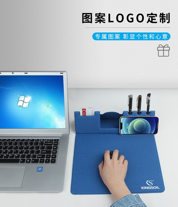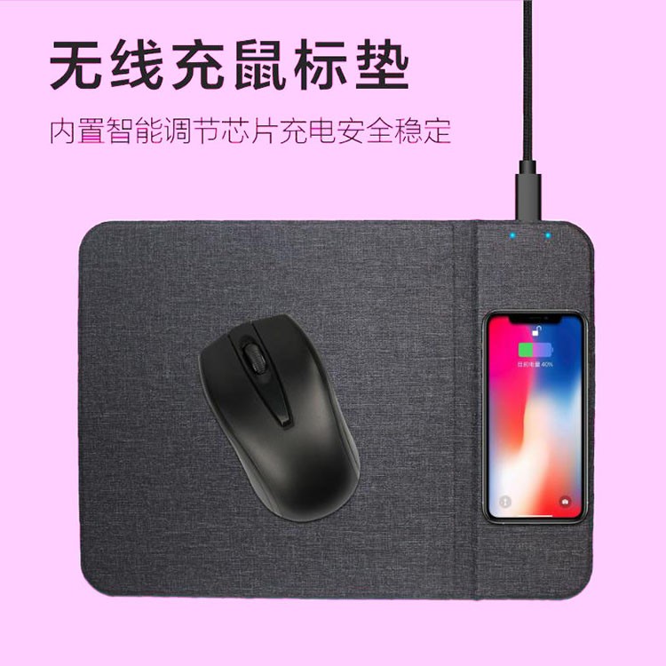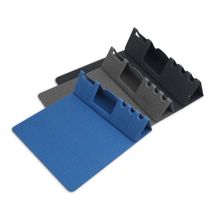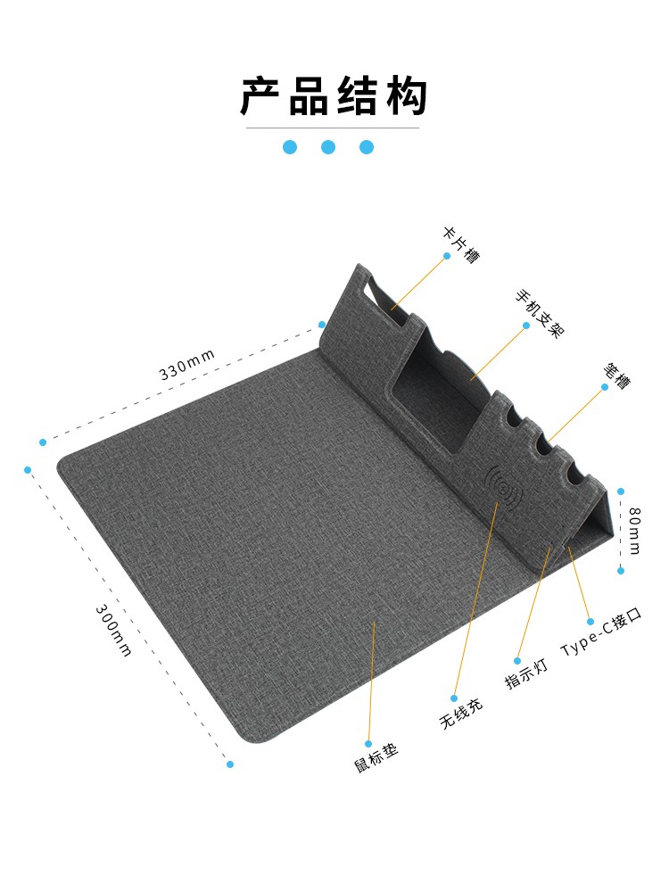 折疊支架款無線充電鼠標(biāo)墊可定制 布紋超薄無線充鼠標(biāo)墊可印LOGO