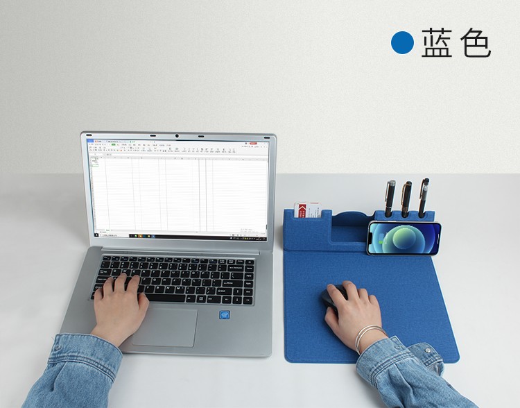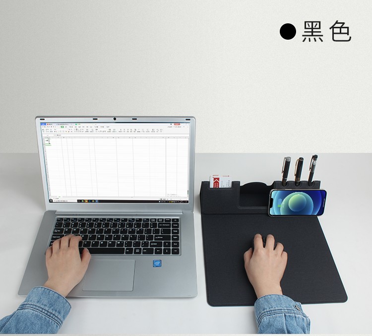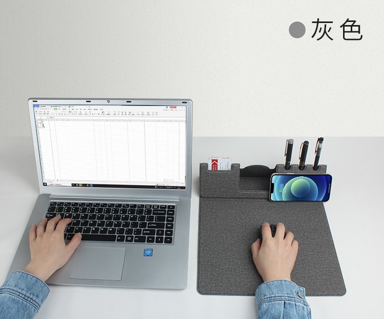 支架款無線充鼠標(biāo)墊,手機(jī)一放,立即充電,給手機(jī)提供支架,布面,表面細(xì)膩、平整、操作穩(wěn)定,底部淺絨,防滑穩(wěn)固