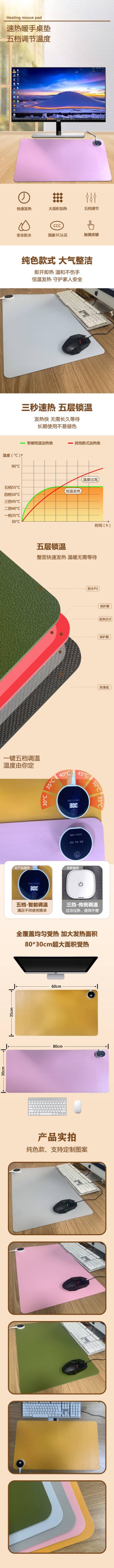 源頭工廠定制皮革橡膠防滑加熱鼠標墊發熱桌墊批發超大恒溫電競鼠標墊
