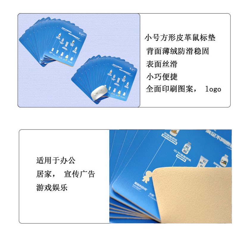 工廠批發PU皮革款小號方形鼠標墊防污鼠標墊印刷圖案logo量大優惠