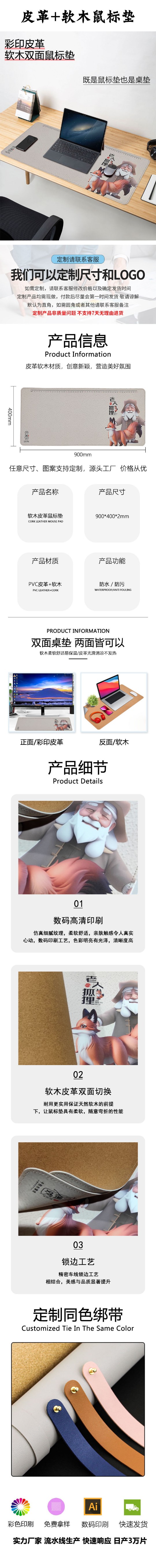 定制軟木+皮革鼠標(biāo)墊廣告電競(jìng)游戲墊辦公寫(xiě)字桌墊杯墊地墊來(lái)圖定制