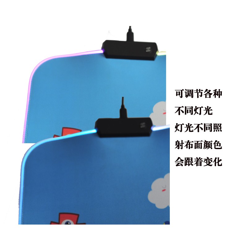 鼠標墊的四周便亮起RGB七彩燈光,顏值瞬間拉滿。通過頂部的燈效切換按鍵,還能調節多種燈效,既有固定的,也有動態的,除了七彩燈效,也能設置自己喜歡的單色。